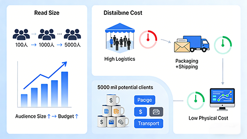 Prospect magnitude swells outlays—larger cohorts demand heftier hauls. Channels modulate: Offline galas/expos, mailings, or digitals incur disparate logistics/overheads. For 5,000 bespoke tumblers to leads, aggregate acquisition, enclosures, and vectors—ensuring promotional products distribution cost analysis aligns with reach.