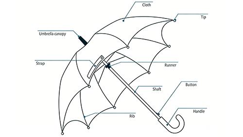 | Canopy Fabric | Polyester, Nylon, Pongee | Waterproof, UV-resistant, wear-proof, easy printing | Folding, Long-Handle, Golf Umbrellas |