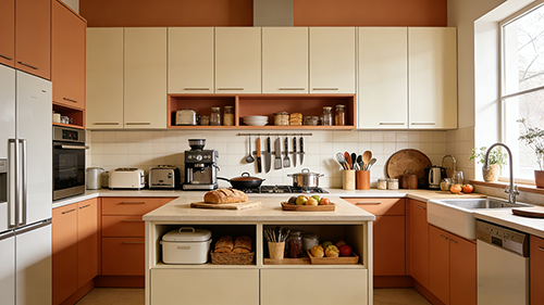- Coordinated handle colors/woods matching your kitchen aesthetic.