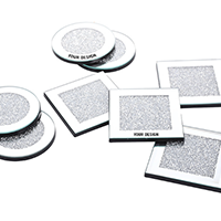 Standard shapes are round, square, and rectangle. Custom shapes can be cut to match your brand or design.