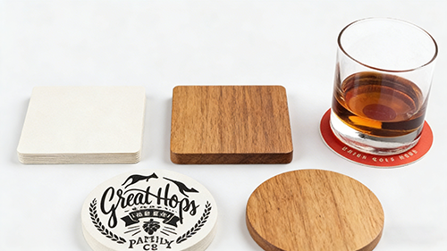 3. Supreme Customizability (Custom Coasters): What kind of content can be printed on coasters? Emblems, QR codes, intel—shapes (rounds, squares, bespoke), vibes (minimalist, vintage, whimsical, cartoonish). Techniques: Screening for swaths, lasering for luxe.